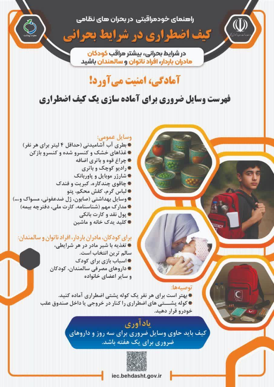 یادآوری: کیف باید حاوی وسایل ضروری برای سه روز و داروهای ضروری برای یک هفته باشد.
