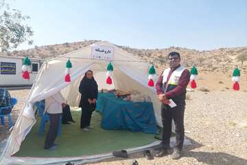ارایه خدمات جهادی سلامت در منطقه عشایر نشین باراشلو شهرستان فسا با همکاری ادارات و نهادهای شهرستان/بازدید امام جمعه و مسوولین نظامی از ارایه خدمات جهادی