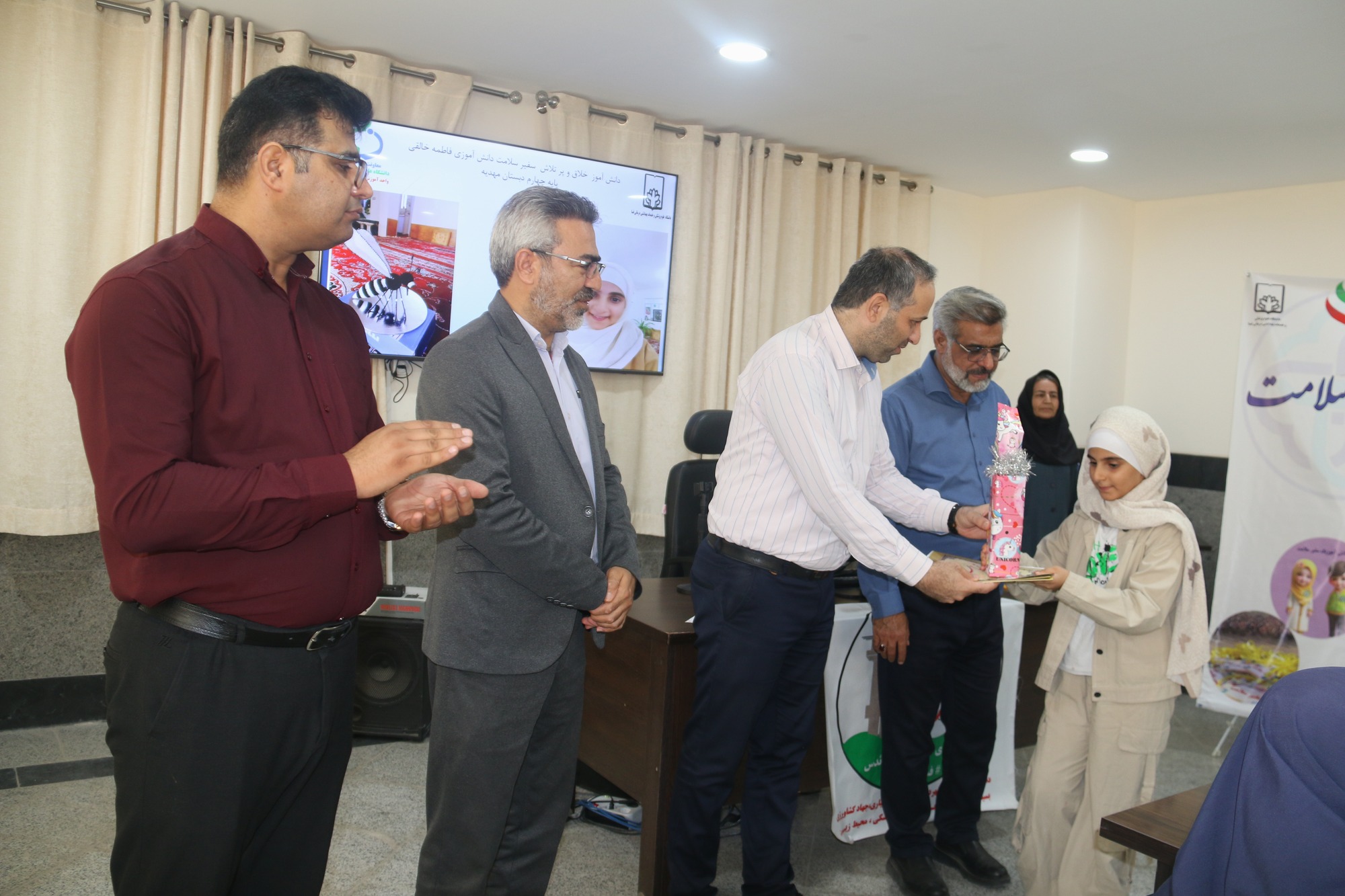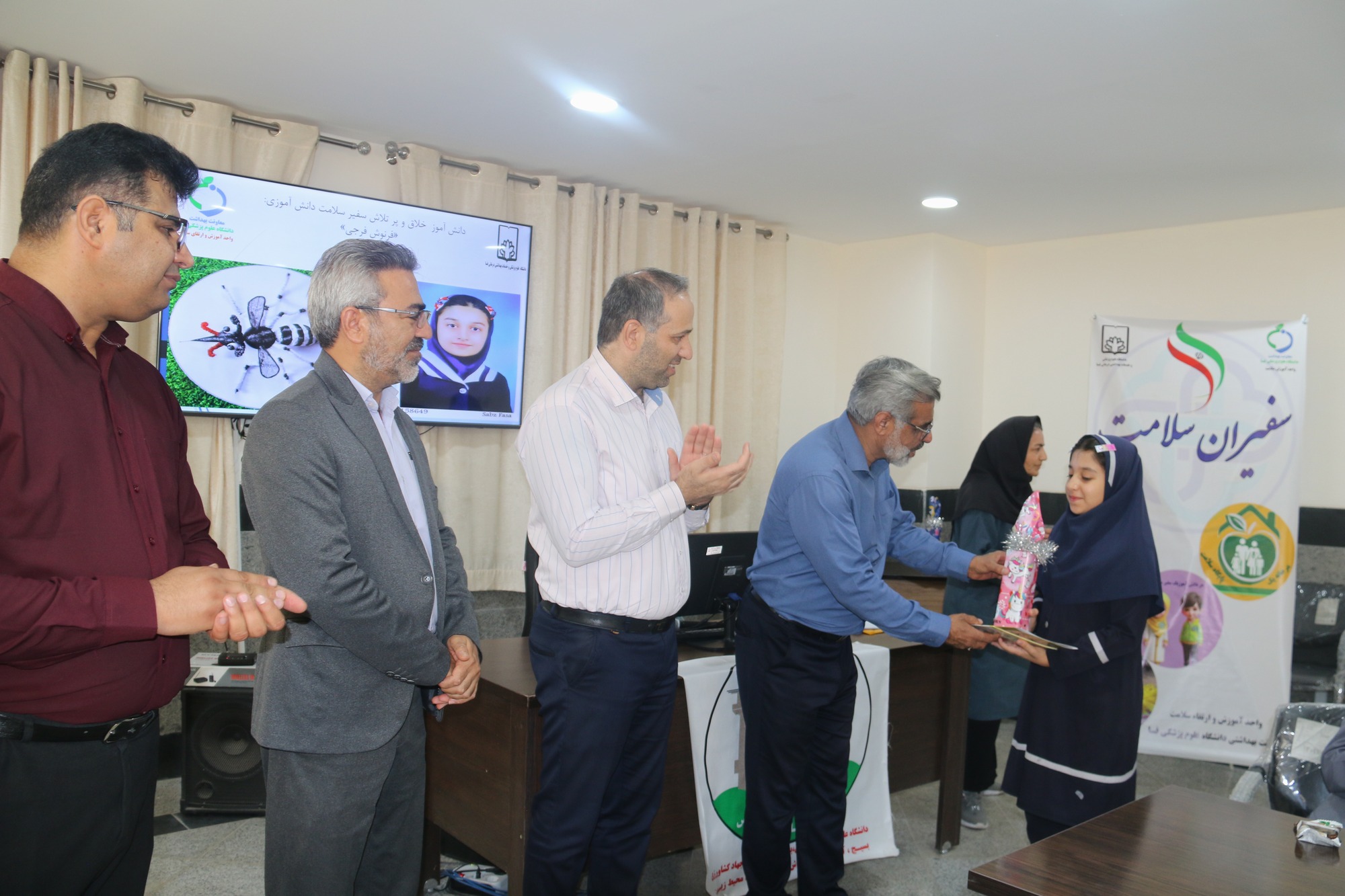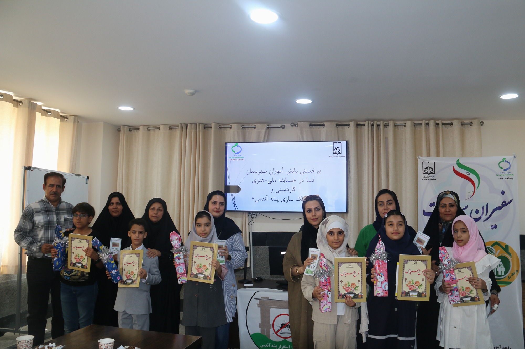ارشدی نژاد اظهار داشت: به پاس تلاش و مشارکت سفیران سلامت دانش آموز در مراسمی با حضور مهندس اسماعیل حیدری معاون فنی و جمعی از مسئولین ستادی معاونت بهداشت فسا، معاون پرورشی و سلامت اداره آموزش و پرورش مجتبی هاشم زاده و خانواده های دانش آموزان از ( محمدمبین توفیق زاده، امیرمحمدپیری امیرحاجیلو، فاطمه خالقی خرنجانی، ترانه رحمتی، ارشک عابدی ششده، زهرا عابدینی، فرنوش فرجی و محمد طاها فیروزی ) منتخبین مرحله نیمه نهایی این مسابقه با اهدای لوح تقدیر و هدیه قدردانی به عمل آمد.
