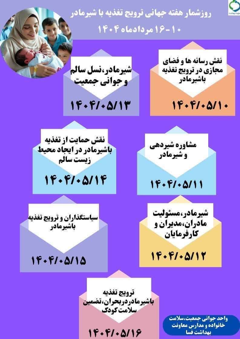پنج شنبه ۱۴۰۴/۰۵/۱۶؛ ترویج تغذیه با شیرمادر در بحران، تضمین سلامت کودک