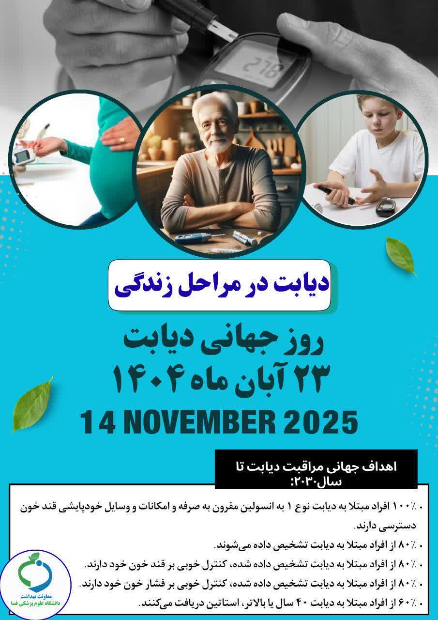 روزشمار هفته ملی دیابت سال 1404 ( 17 لغایت 23 آبان ماه ) با شعار دیابت در مراحل زندگی و دیابت در محیط کار