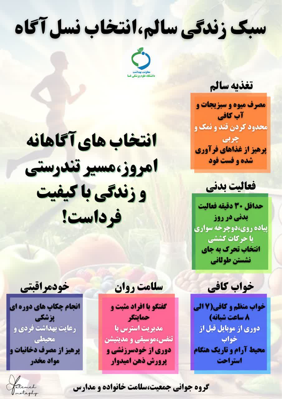 انتخاب های آگاهانه امروز، مسیر تندرستی و زندگی با کیفیت فرداست!