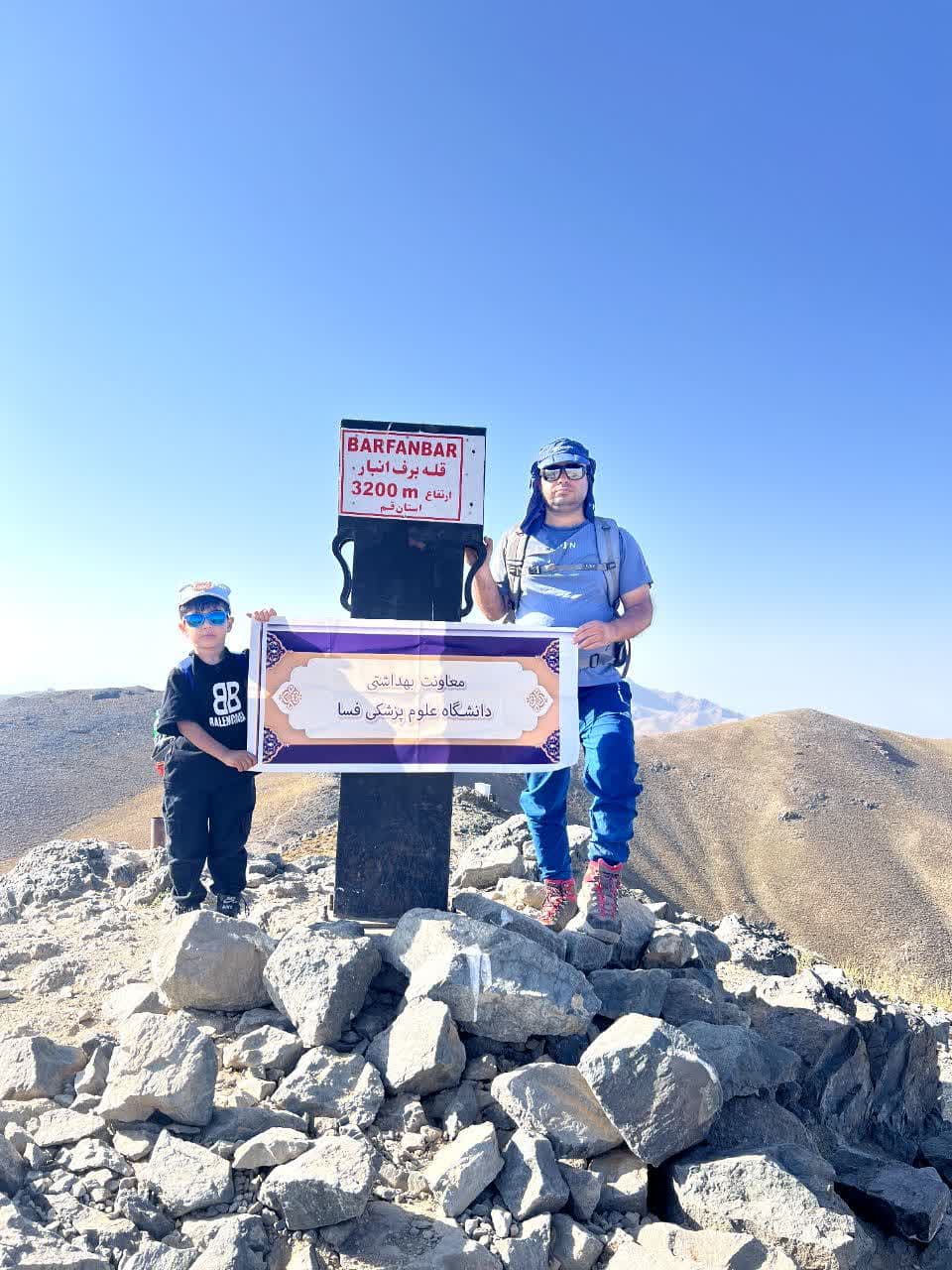 آریا نیکنام فرزند خردسال دکتر سجاد نیکنام سرپرست تجهیزات پزشکی معاونت بهداشت بر بلندای قله برف انبار ایستاد.